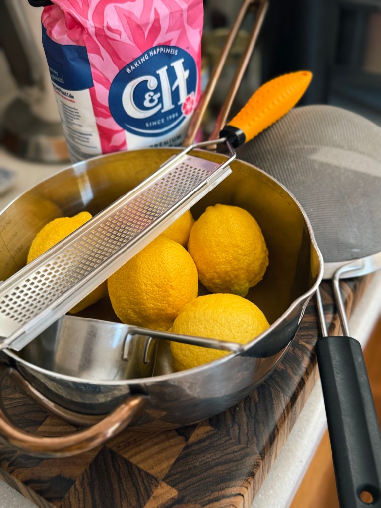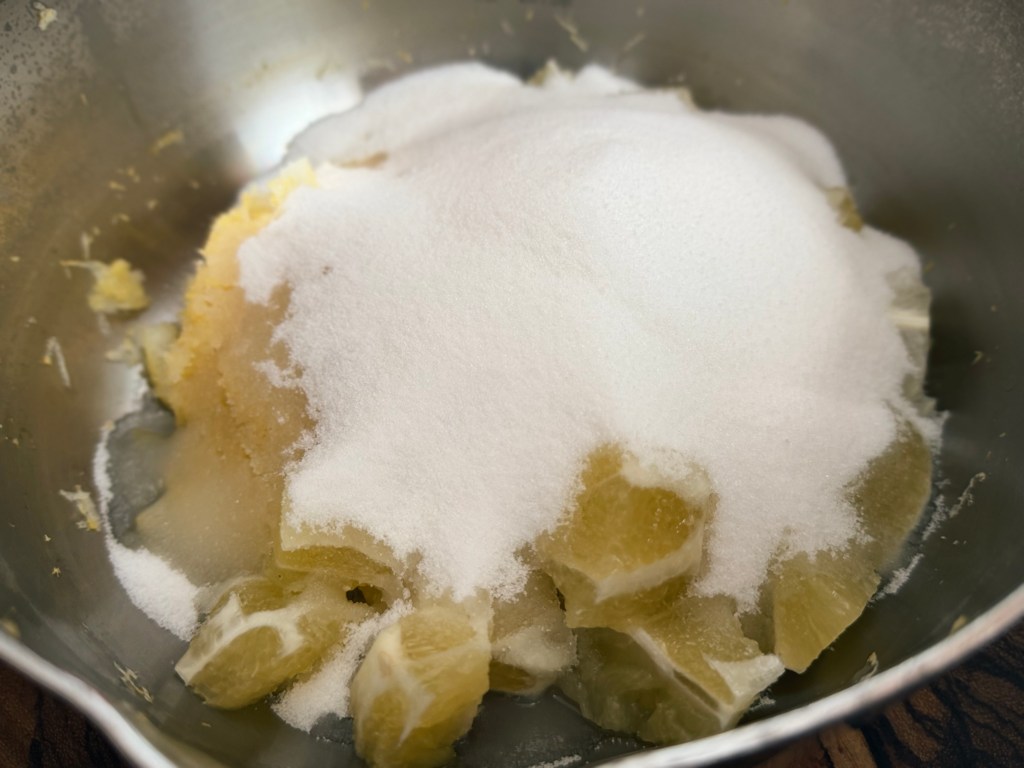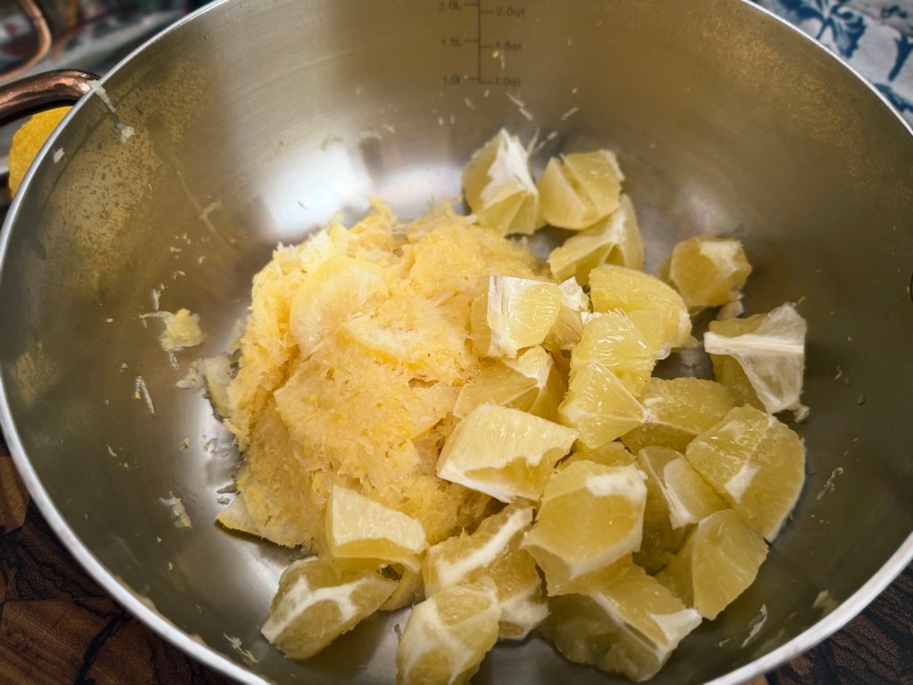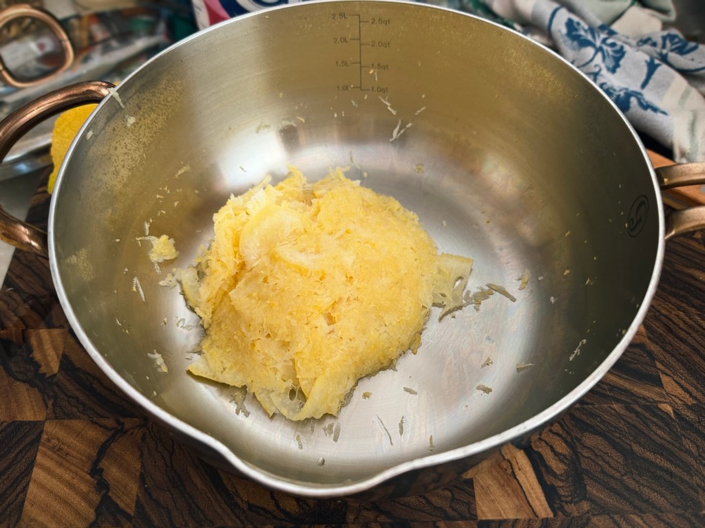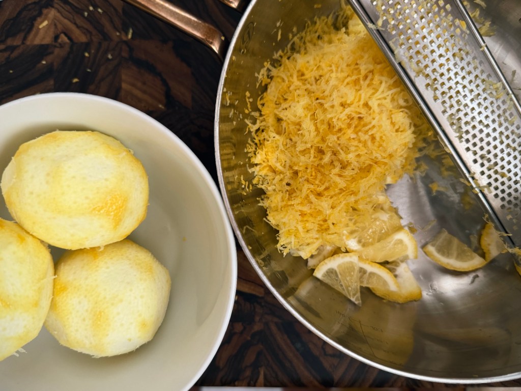 5 – Una vez rallados los tres limones y añadidos a la olla con el limón rebanado, volvemos la atención a los tres limones que acabamos de rallar.